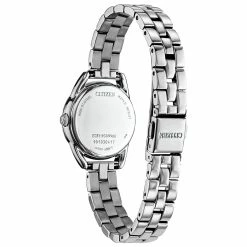 This Citizen® Quartz two-tone bracelet watch with date will be a gorgeous addition to your attire! It has a stainless steel bracelet with white dial with crystal and date feature and comes in a two tone stainless steel case. Case size: 32mm.Style EU6084-57A.Limited Manufacturer’s Warranty.