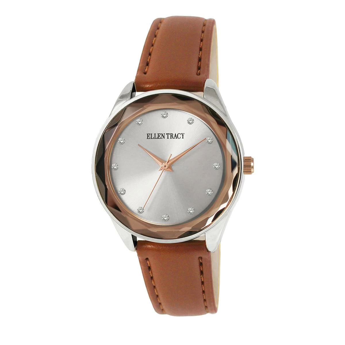 Ellen Tracy Silver-Tone Rose Faceted Bezel Watch -ET5181SL