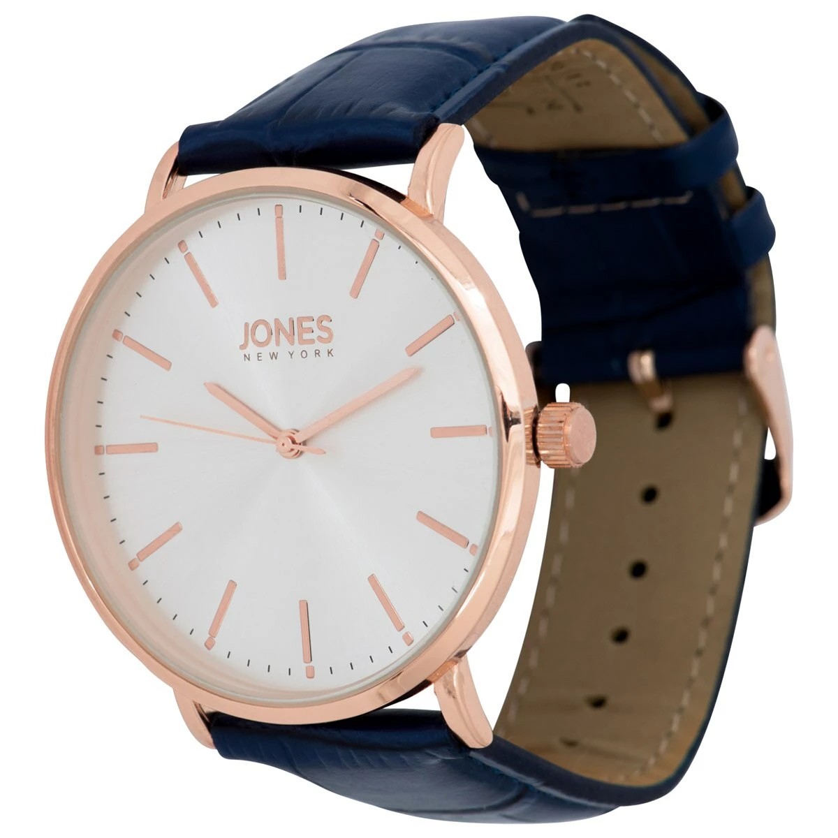Mens Jones New York Navy Leather Strap Watch – JNM3473RG557-007