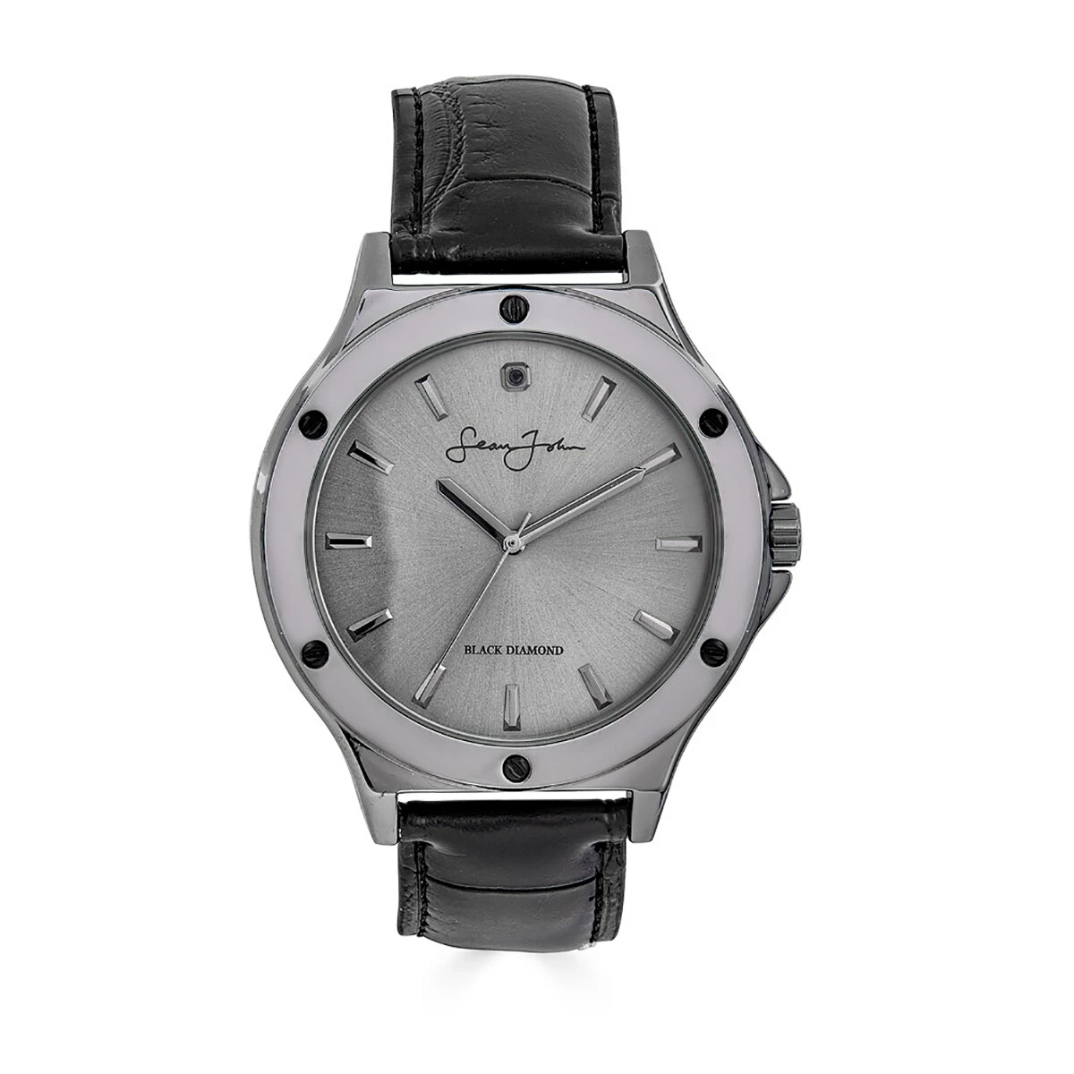 Mens Sean John Genuine Black Diamond Screw Bezel Watch SJB0002GU