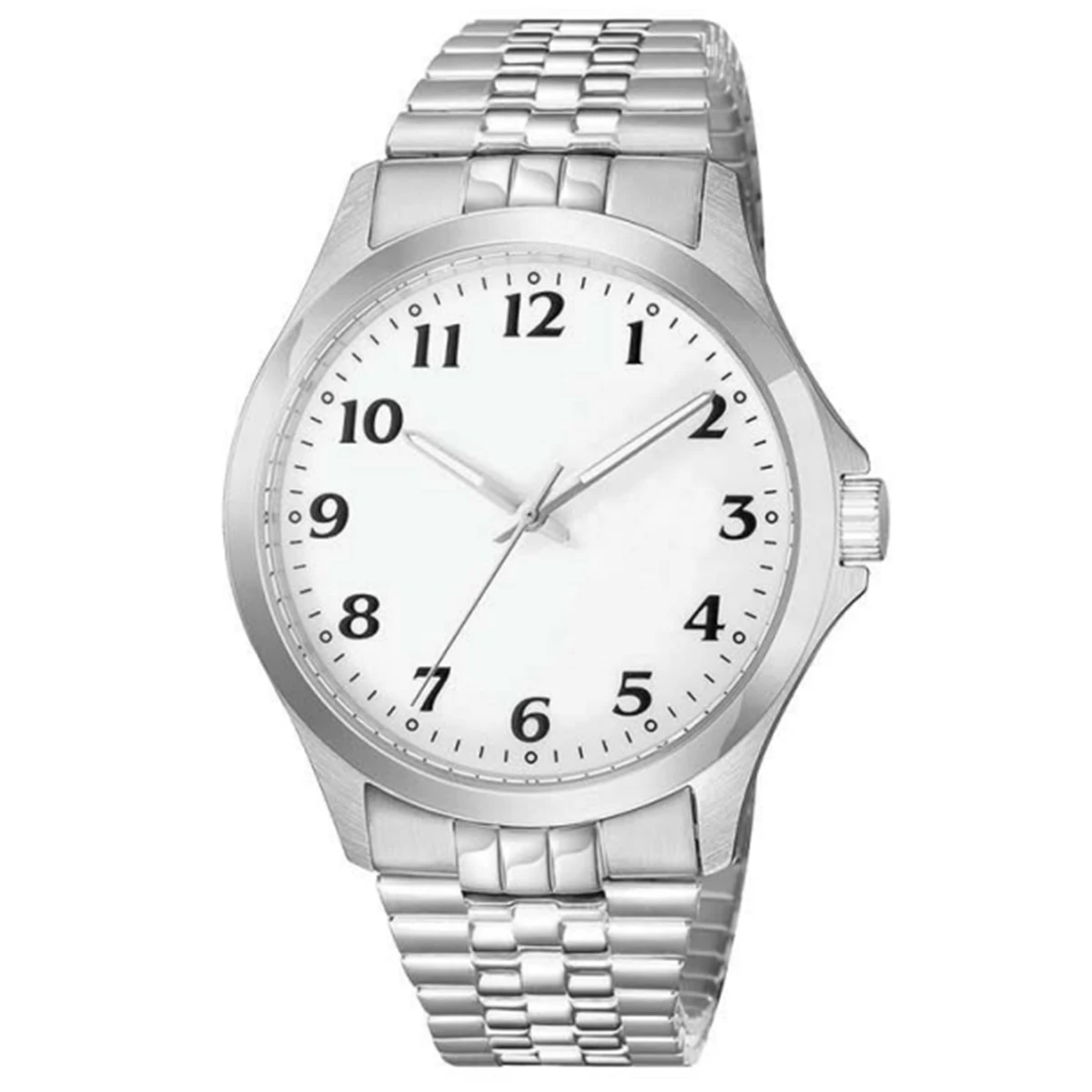 The Men’s analog-quartz watch is handsomely crafted with a round shiny silver-tone case with a thickness of 9mm and a width of 39mm that comes with a polished silver expansion bracelet with a length of 203mm and a width of 19mm. It has a 35mm matte white/black print dial making it a perfect timepiece for any modern man. This watch will definitely add an air of refinement and style to any look.