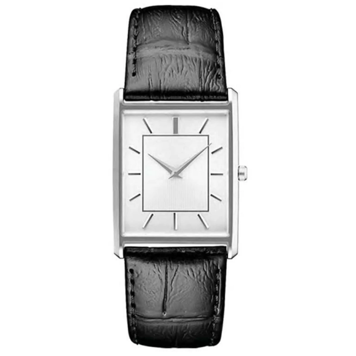 The Men’s analog-quartz watch is handsomely crafted with a rectangular shiny silver-tone case measuring 30mm x 35mm x 9mm that comes along with black croc PU leather strap with a length of 248mm and a width of 24.5mm. It has a buckle closure and a 26mm x 31mm light silver sunray dial with a striped texture dial making it a perfect timepiece for any modern man. This watch will definitely add an air of refinement and style to any look.