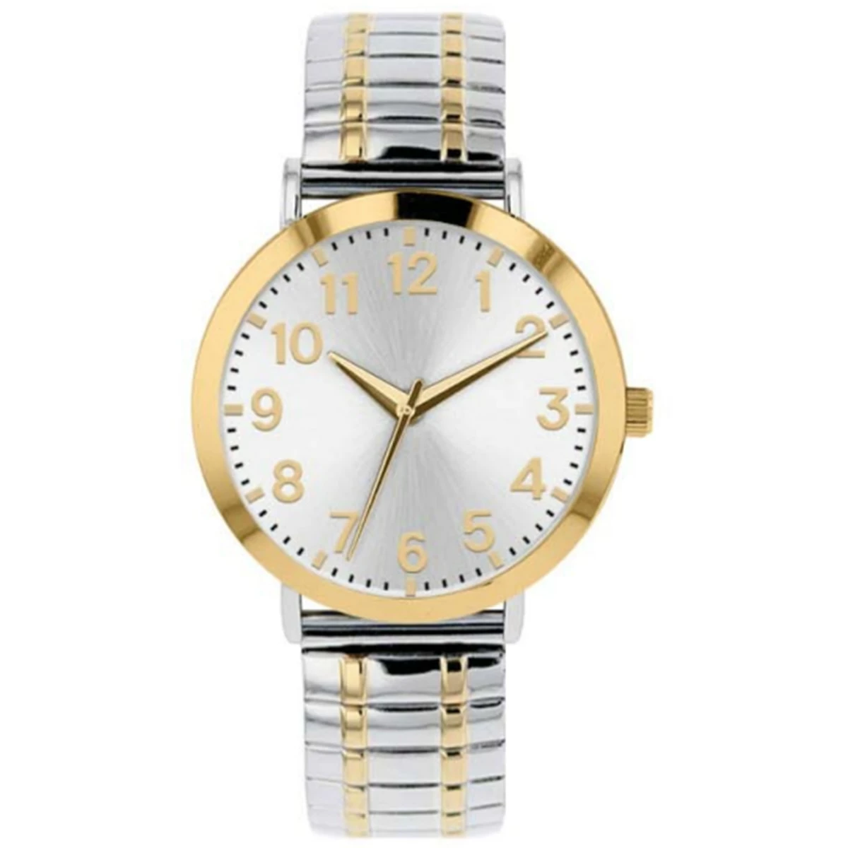 The Men’s analog-quartz watch is handsomely crafted with a round shiny silver-tone case with a thickness of 9mm and a width of 37.5mm that comes with a polished silver-gold expansion bracelet with a length of 203mm and a width of 18.5mm. It has a 34mm light silver sunray dial making it a perfect timepiece for any modern man. This watch will definitely add an air of refinement and style to any look.