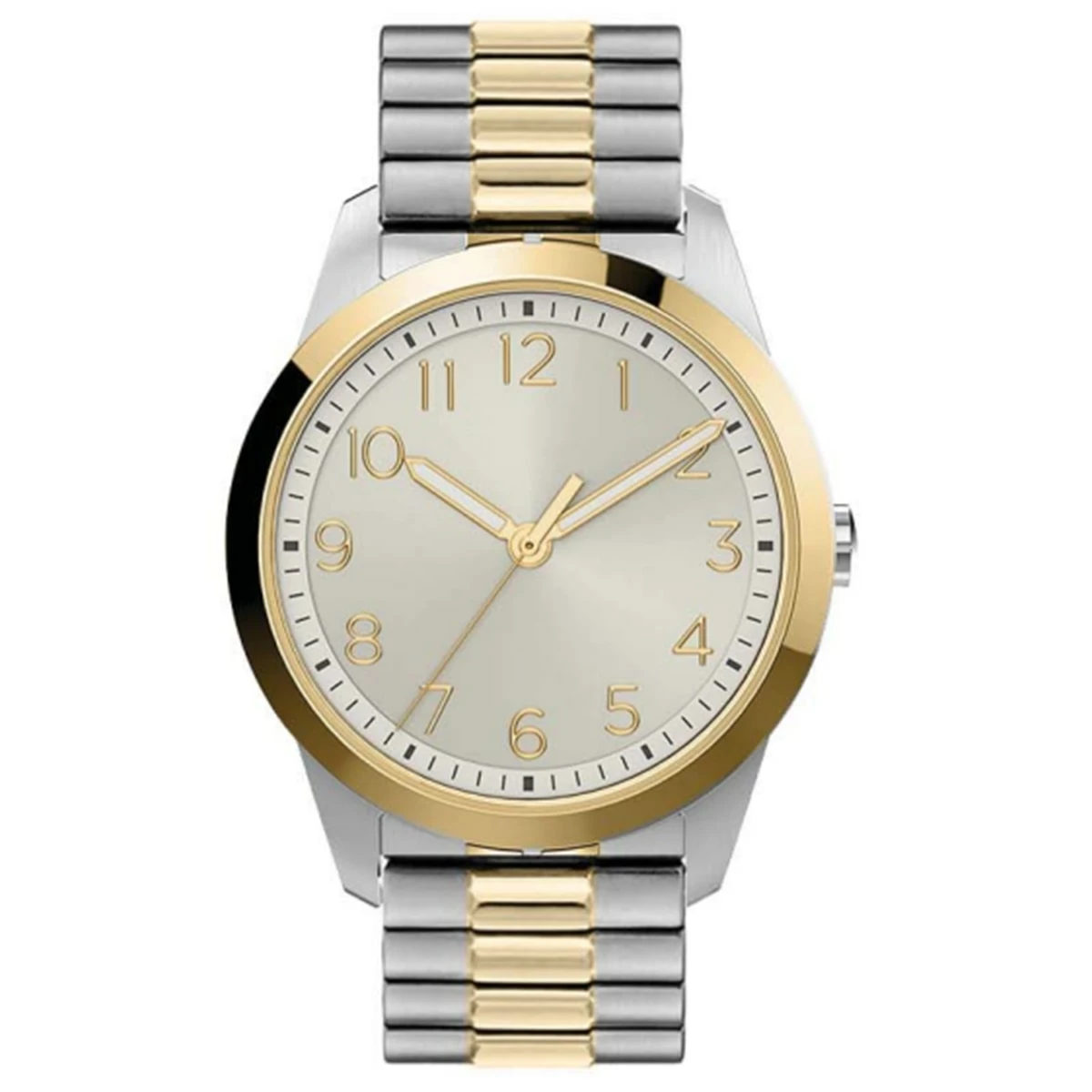 The Men’s analog-quartz watch is handsomely crafted with a round shiny silver-tone case with a thickness of 9mm and a width of 40.5mm that comes with a polished silver-shiny gold expansion bracelet with a length of 203mm and a width of 9mm. It has a 35mm light silver sunray dial making it a perfect timepiece for any modern man. This watch will definitely add an air of refinement and style to any look.