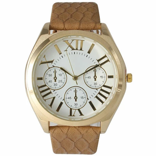 Olivia Pratt Embossed Leather Strap Watch – 14962BEIGE
