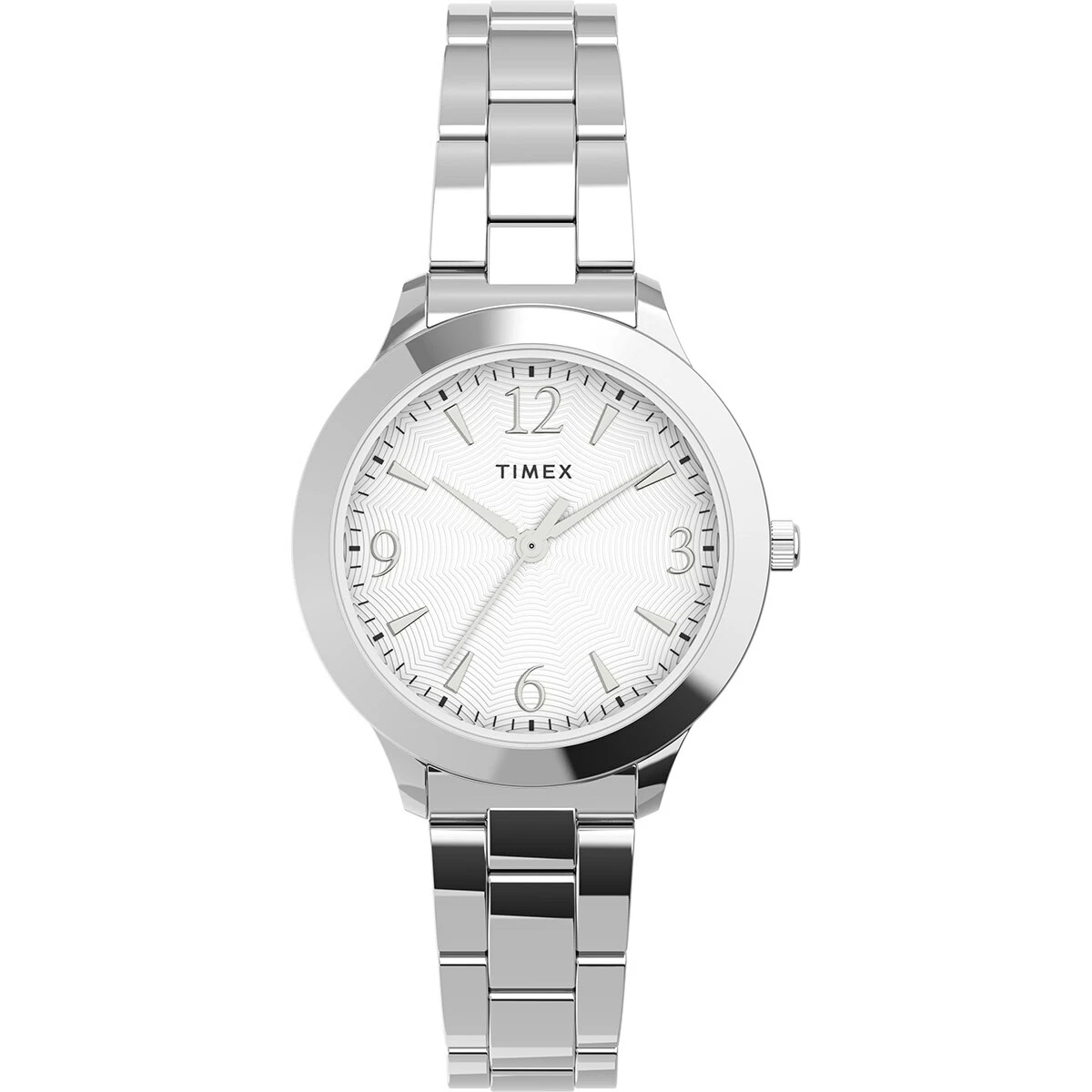 With an exquisite, 32mm silver-tone case, the presentation of this Timex® dress watch is a sight to behold. A textured, silver dial and matching silver-tone, stainless-steel bracelet give this timepiece an air of elegance, although you can rest assured that design and execution aren’t the only areas in which it shines.