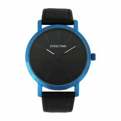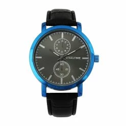 Mens Steeltime Blue IP Leather Watch – C6-014-W